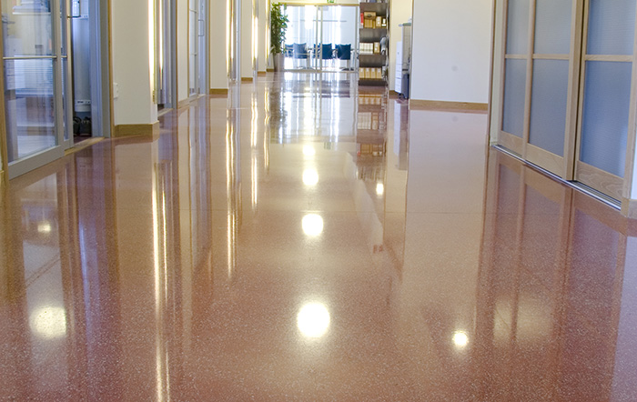 Polished Concrete is the most important flooring alternative to become available within the last few years. The surface of the concrete is diamond ground and polished, then a densifier is applied. The surface becomes highly reflective, beautiful, durable, abrasion resistant, environmentally friendly and easy to maintain.